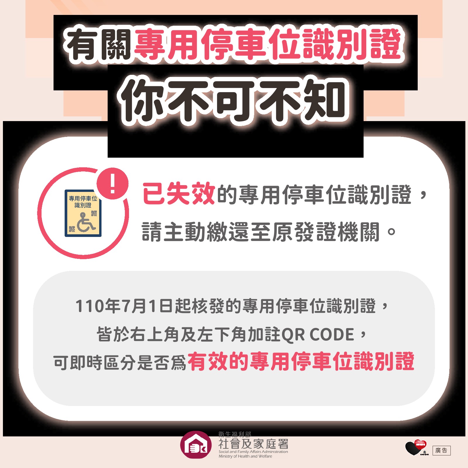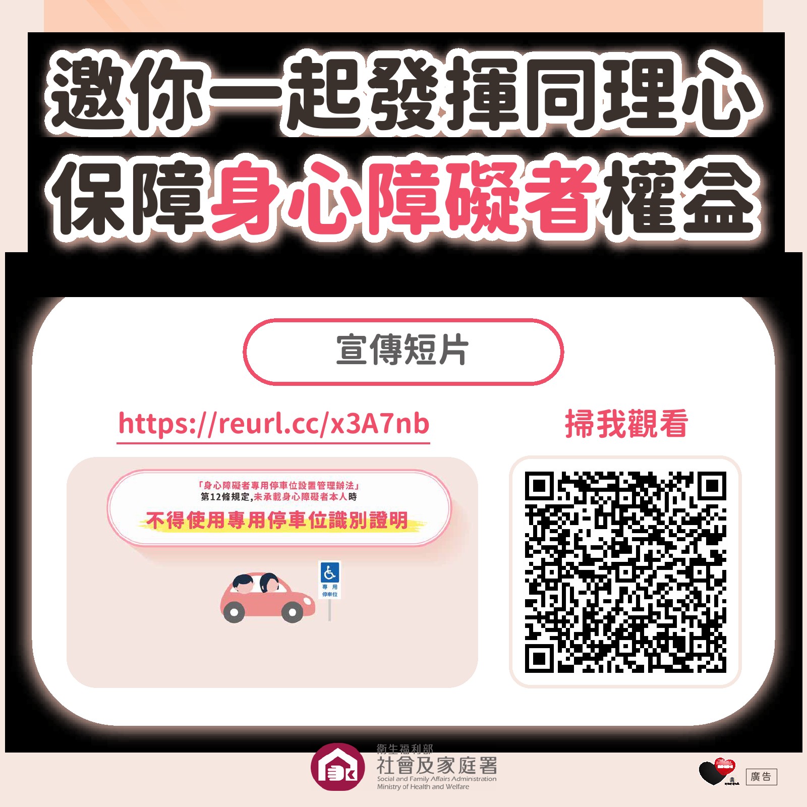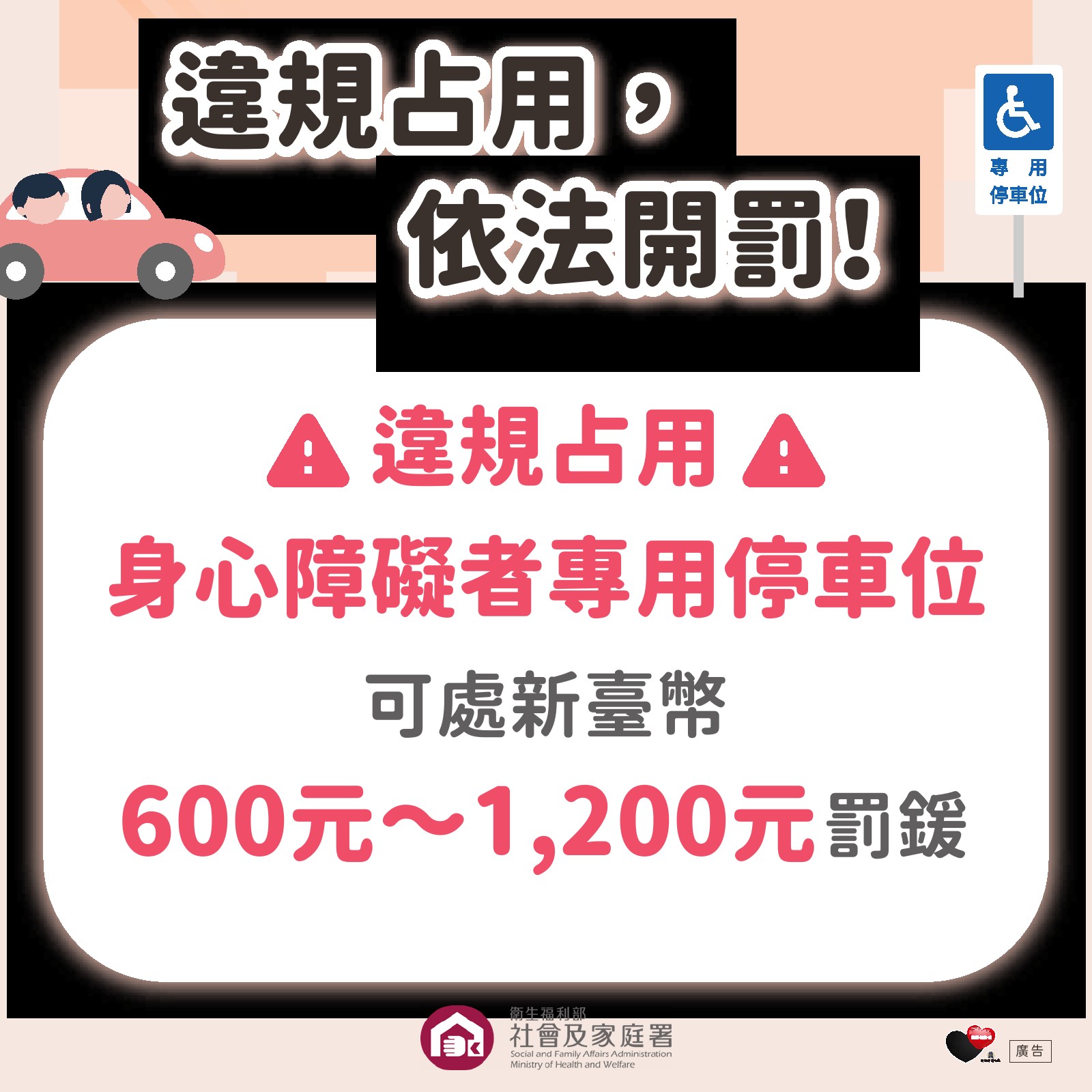 桃園市立中興國民中學(2025)。【平面】衛生福利部社會及家庭署為加強宣導民眾正確使用身心障礙者專用停車位,製作宣導宣導圖卡。上網日期: 2025年10月18日。檢自:https://pse.is/8au29k。〔點圖連結原文網站〕